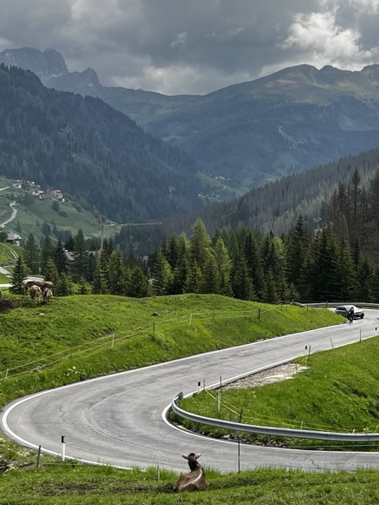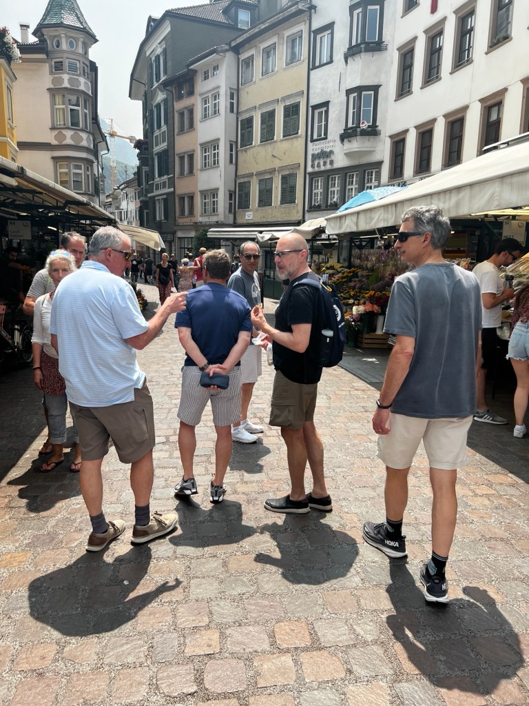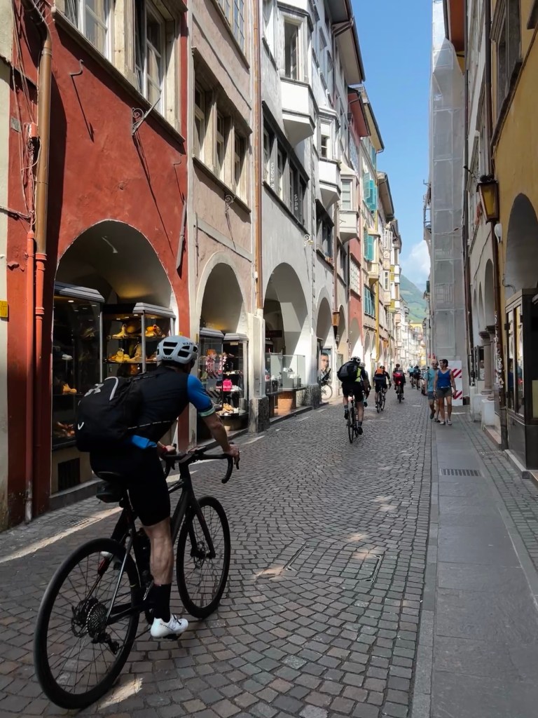 Though there were close calls (a squirrel darted out in front of Ken while he was doing 40 mph, a van nearly sideswiped Steve in Alleghe, Donna’s shoelaces tried to trip her up in Bolzano) there were no mishaps on the bikes. Very thankful for that.