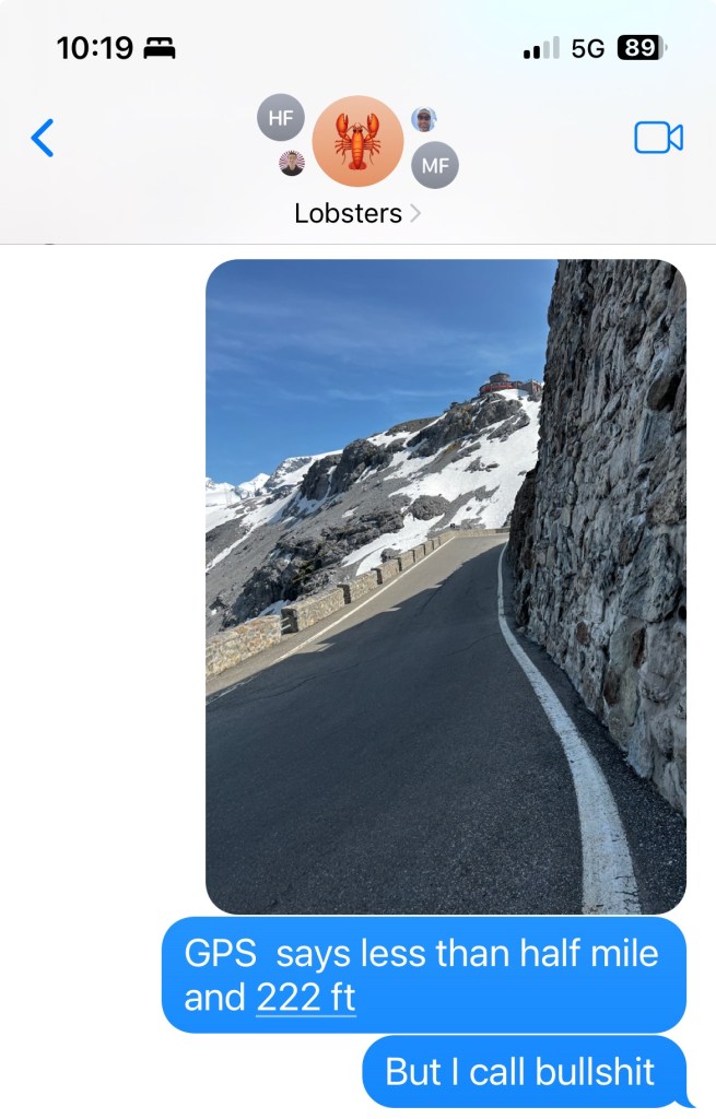 The motorcyclists…They don’t seem fond of cyclists, but they had a surprising admiration for Stelvio finishers. Many congratulated me and shook my hand.