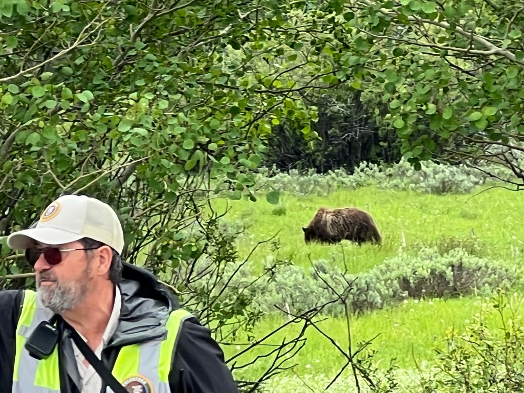 I was riding northbound on a part of the Tour Divide race course and crossed paths with several racers heading south. And then, about six miles up the road, I saw stopped cars on the side of road, and knew instantly I was about to see a bear.