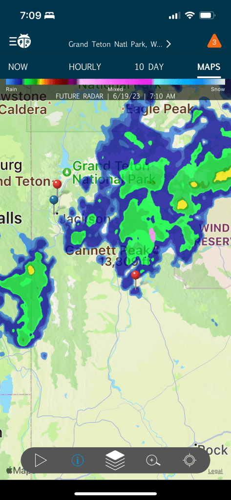 Soon after I arrived at my hotel in Jackson. I received a text from Kai. He had arrived at the next campground, and had experienced both weather and mechanical difficulties.