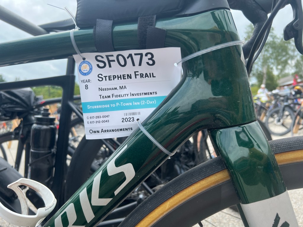 On Sunday morning, Ed and I were up at 3:30 am so that we could get packed, ready the bikes, eat, and get to the Bourne Bridge, where a dedicated bike lane was opened for us between 5 and 6 am. If you’re late you have to walk over the bridge, which is not fun in cycling shoes.