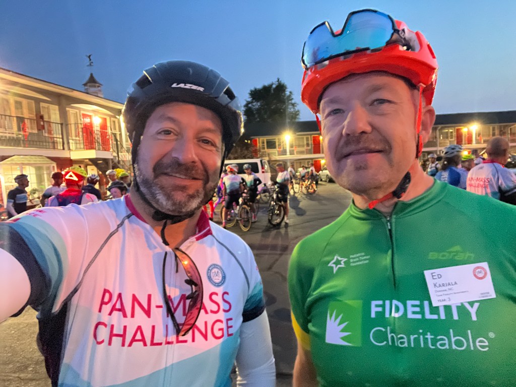 Every long-term PMC rider will tell you about how they’ve developed friendships with people they see only once per year. In the 8 years I’ve been doing the PMC ride I have developed many such friendships, and it’s always a delight to see them. Some of those friendships have grown into year-round friendships. I may see them on random group rides or make plans to ride together. Some have even reached the point where we plan destination rides together.