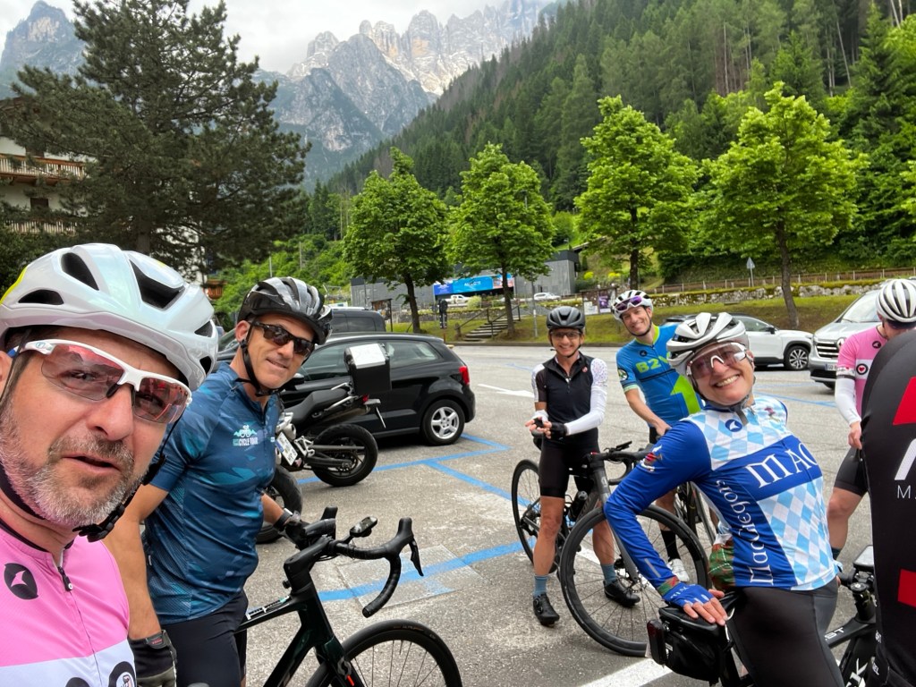 At the suggestion of some friends, I’m resurrecting this blog for my next epic cycling adventure: touring the Dolomites! I’ve been blessed to find a group of local riders who welcomed me into their tight community. We match well in all ways that matter, and they’ve become close friends. And that has led to me joining them on what for them have been annual rides in Europe through mountain climbs made famous by the Tour de France and other pro cycling tours. This year, the group chose the Dolomites and have planned a multi-day path from Alleghe to Bormio, with upwards of 90,000 feet of climbing over 600+ miles.